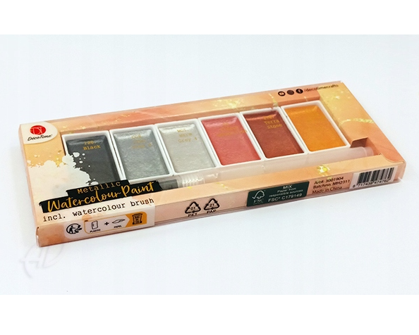Metalizowane akwarele DécoTime - 6 kol / pomarańcz,srebro