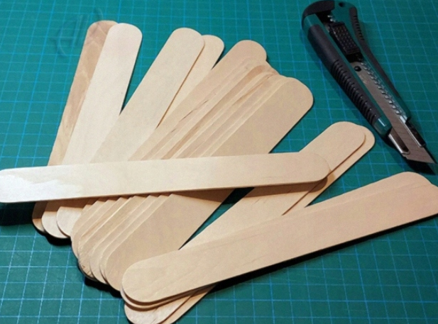 Drewniane patyczki w typowym kształcie jak do lodów - do majsterkowania, tworzenia ozdób itp. Nadają się do najrozmaitszych prac kreatywnych w tym scrapbooking i decoupage. Ze względu na duże rozmiary można stworzyć dzięki nimi ciekawe prace artystyczne 2D i 3D. Do szerokiego zastosowania.