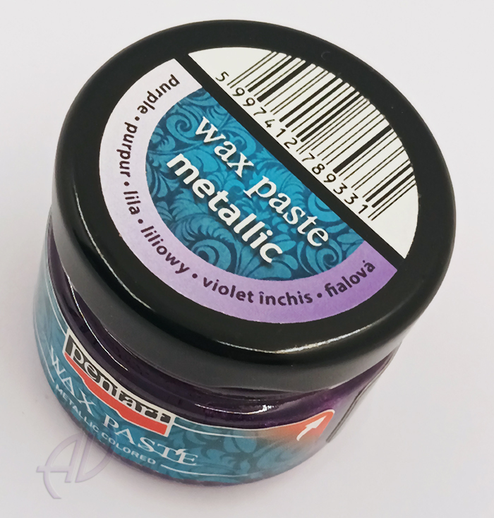 Pasta woskowa, z metalicznym połyskiem, nadaje jasnym powierzchniom żywy, metaliczny połysk, z woskiem pszczelim i olejkiem pomarańczowym.