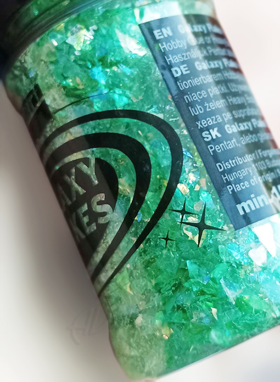 Mieniące płatki. Do użytku z samoprzylepnym klejem hobbystycznym lub heavy body żelem.